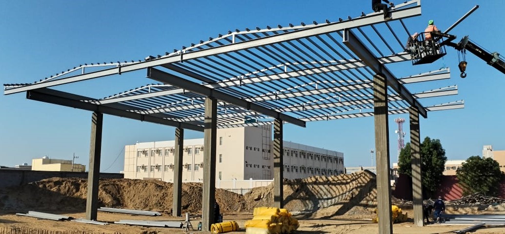 Design, fabricate and install steel structure building and steel shade 50 tons, area 1500m2.